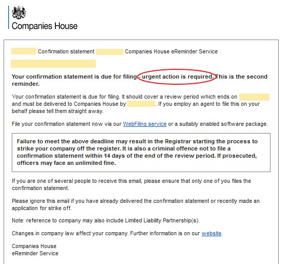 The main reason for this blog is because every single year when companies house sends you a reminder to file the CS01, they might send one that looks like this: